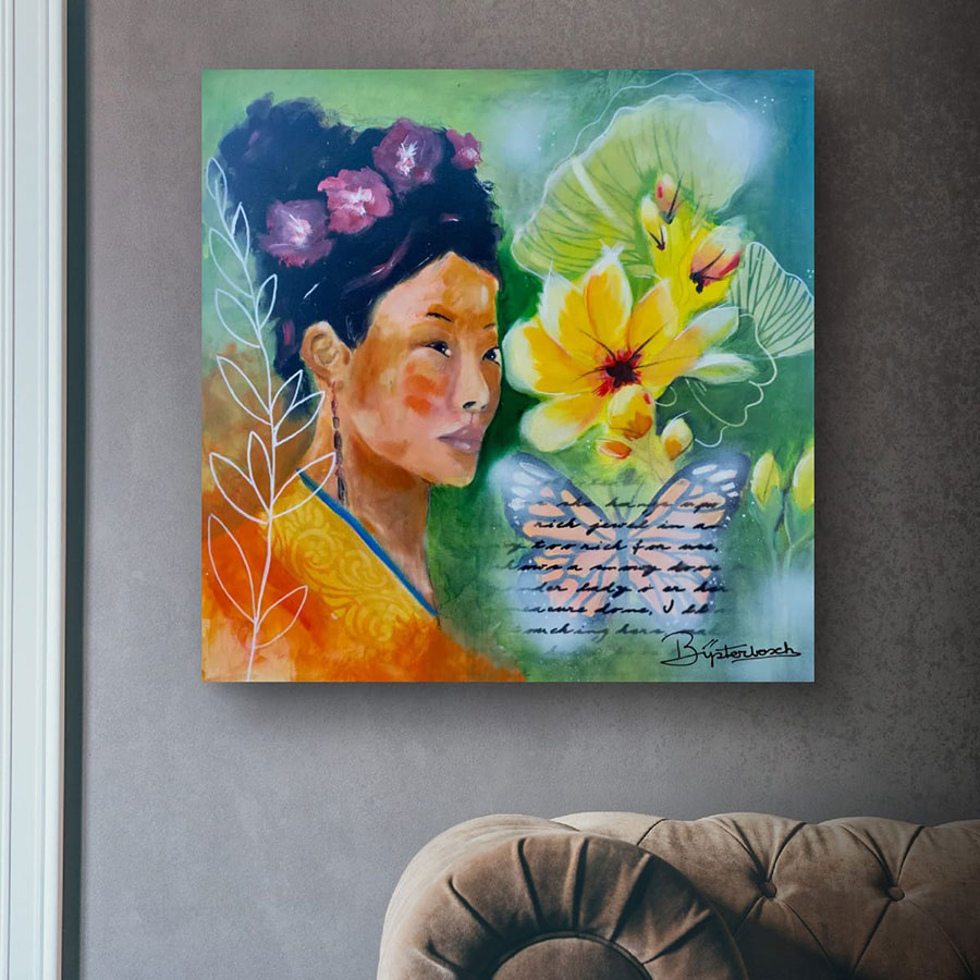 This is also where the difference between mass-produced wall decor and fine art becomes clear. Fine art is shaped by intention. The composition, the palette, the mark-making, the subject – all of it carries a personal vision. That vision is what gives a piece staying power. Trends pass. Emotional truth lasts.
