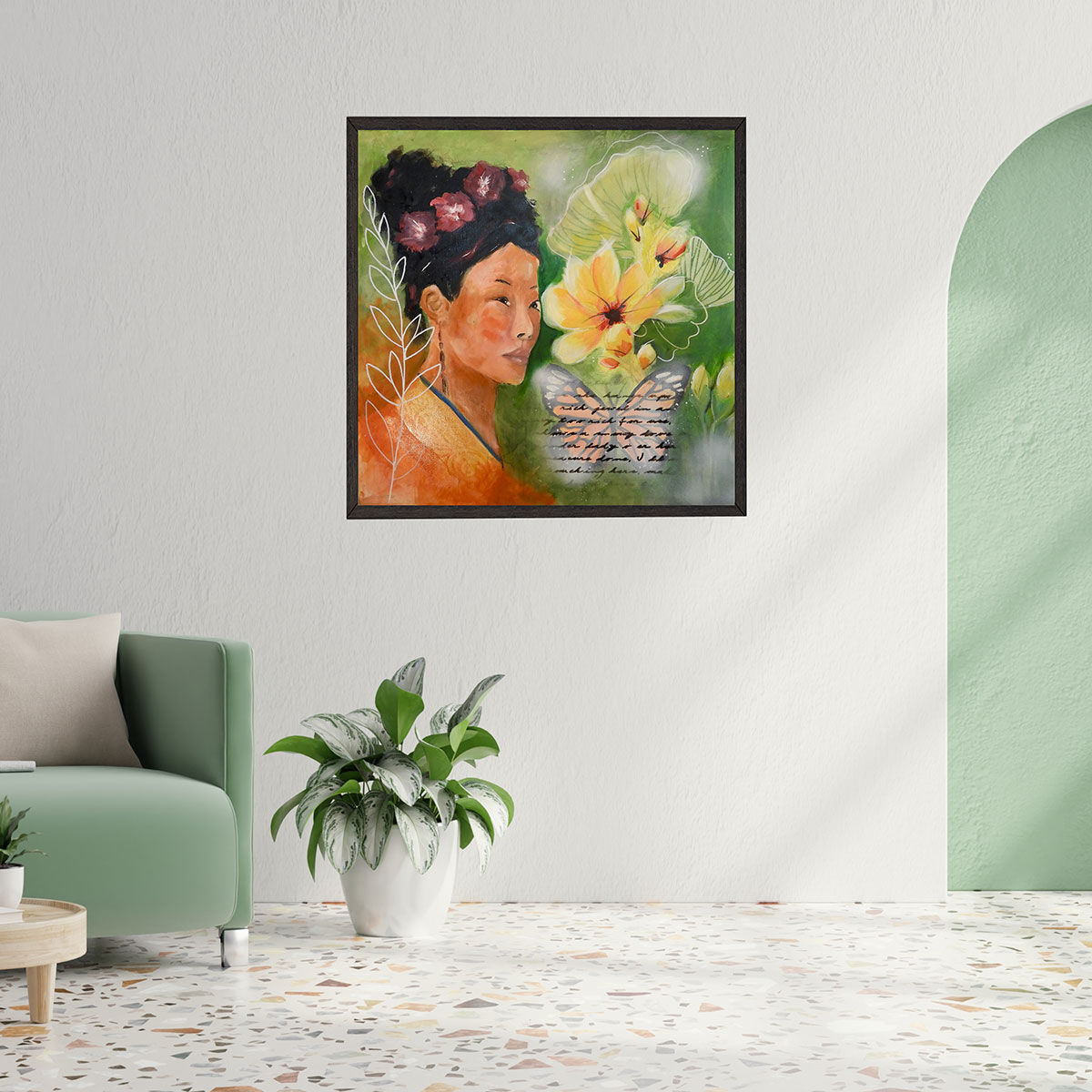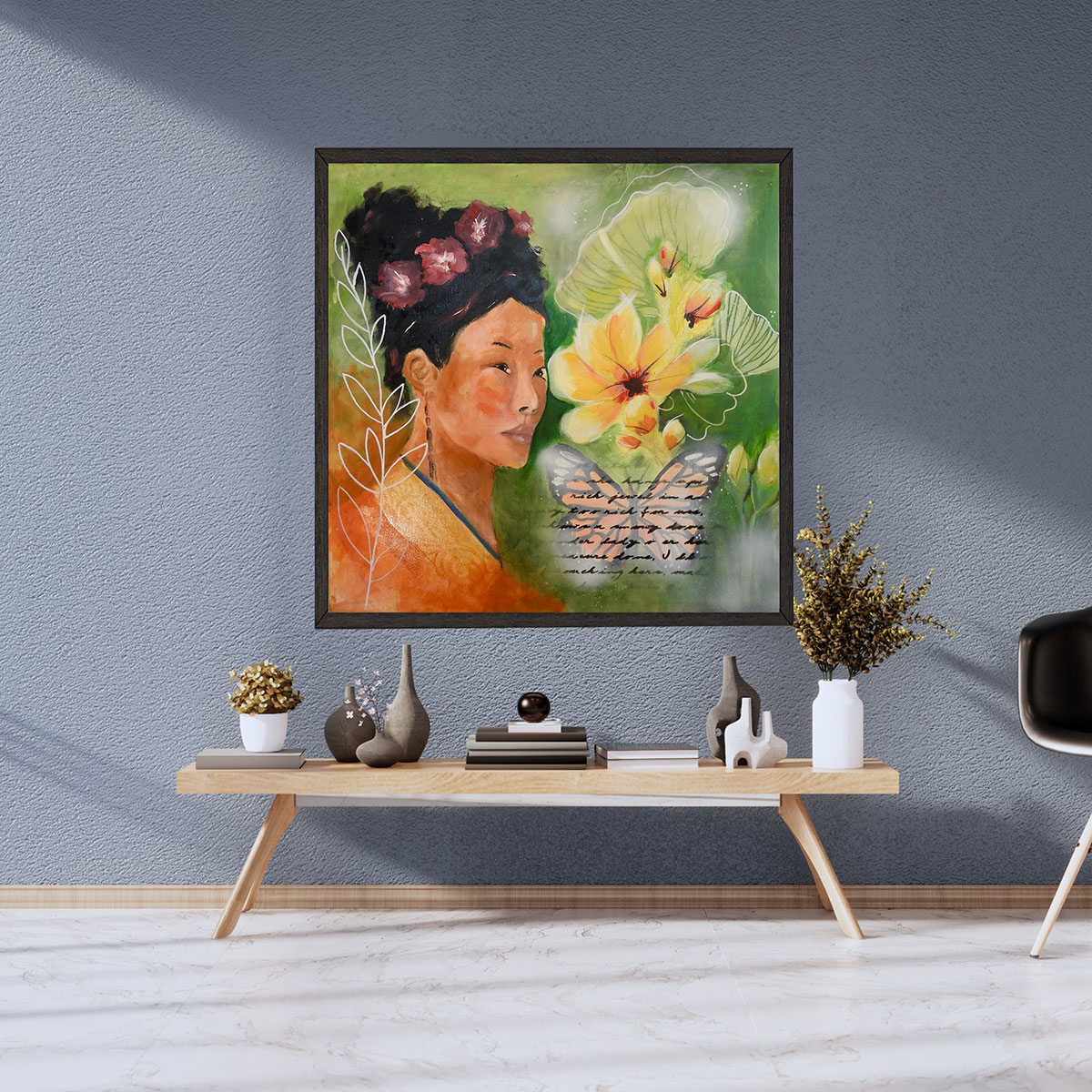 Whether displayed as a centerpiece in your living space or as part of a gallery wall, Butterflies and Flowers Remain Untouched brings warmth, serenity, and the joy of nature into your home.